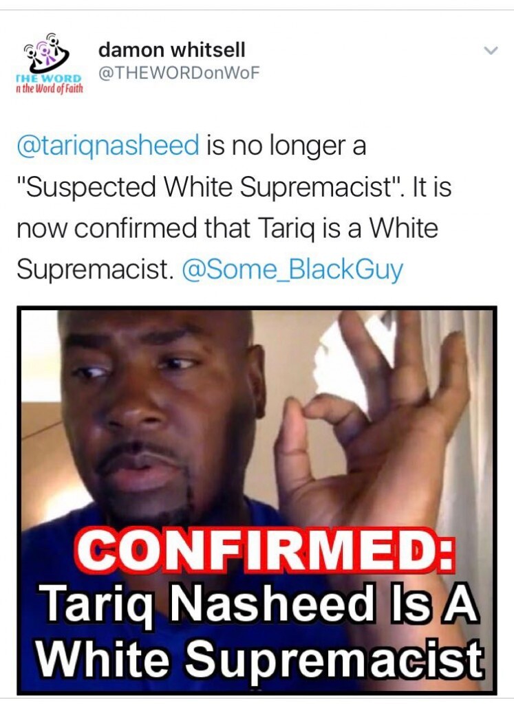 If using the ok symbol 👌🏾represents white supremacy per Tariq Nasheed, then by his own definition, Tariq Nasheed is a white supremacist 😜