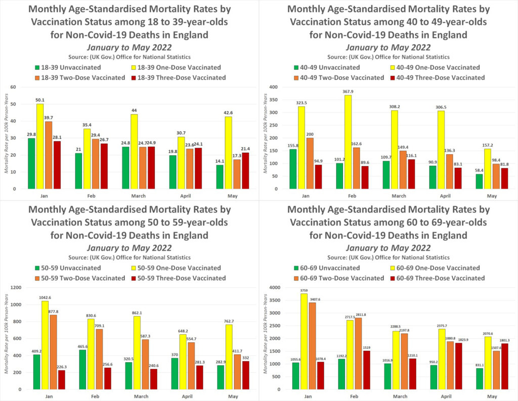 The number of deaths of all causes for young people (under 40) who "die suddenly" without any further explanation - or merely a reference to a heart attack or a stroke - is staggering. Here is the data for the UK - the "unvaccinated" are the only ones not affected by higher than usual death rates: