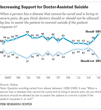 California also passed a euthanasia bill and the media were hard at work to increase "public support", but the question asked was obviously about people with incurable diseases - something anyone with empathy should agree on - not the wider use as euthanasia for patients generating costs for the government healthcare system...