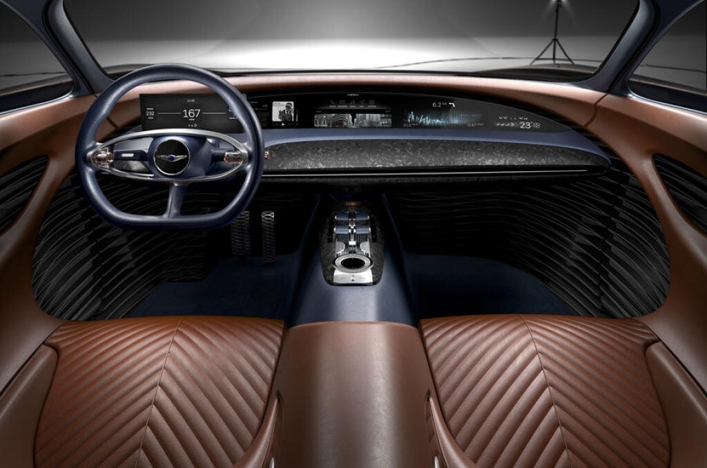 The interior mixes Italian Gran Tourers from the 60's and minimalist design with screens galore whilst being its own thing. It looks marvellous!!