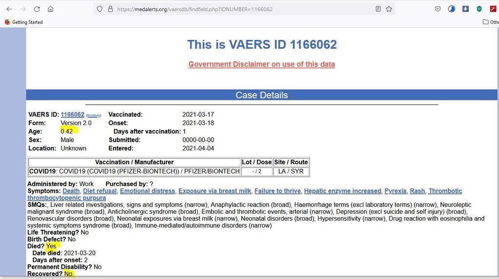 Une liste validée d'effets indésirables graves recensés par le VAERS.