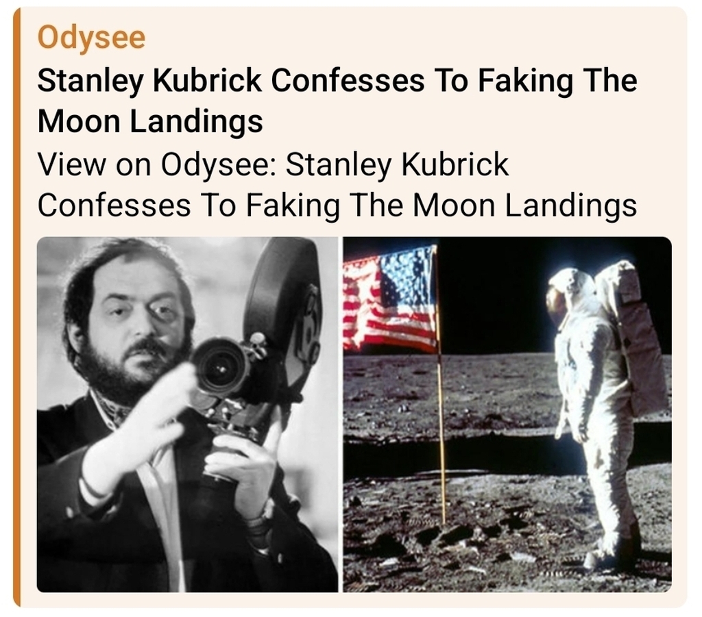 DON'T FORGET ABOUT ABOLISHING NASA WHEN YOU THINK ABOUT THE FED AND IRS .. another useless parasite (a "useless eater") ... Stanley Kubrick Confesses To Faking The Moon Landings https://odysee.com/@DrAutonomy:f/y2mate.com---Stanley-Kubrick-Confesses-To-Faking-The-Moon-Landings_360p:d A Funny Thing Happened On The Way To The Moon https://odysee.com/@yellowgenius:0/A-Funny-Thing-Happened-On-The-Way-To-The-Moon:88