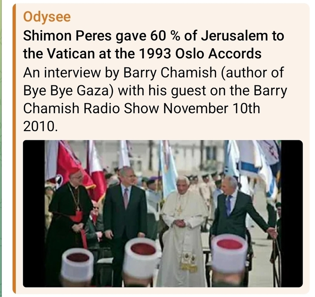 Shimon Peres gave 60 % of Jerusalem to the Vatican at the 1993 Oslo Accords
