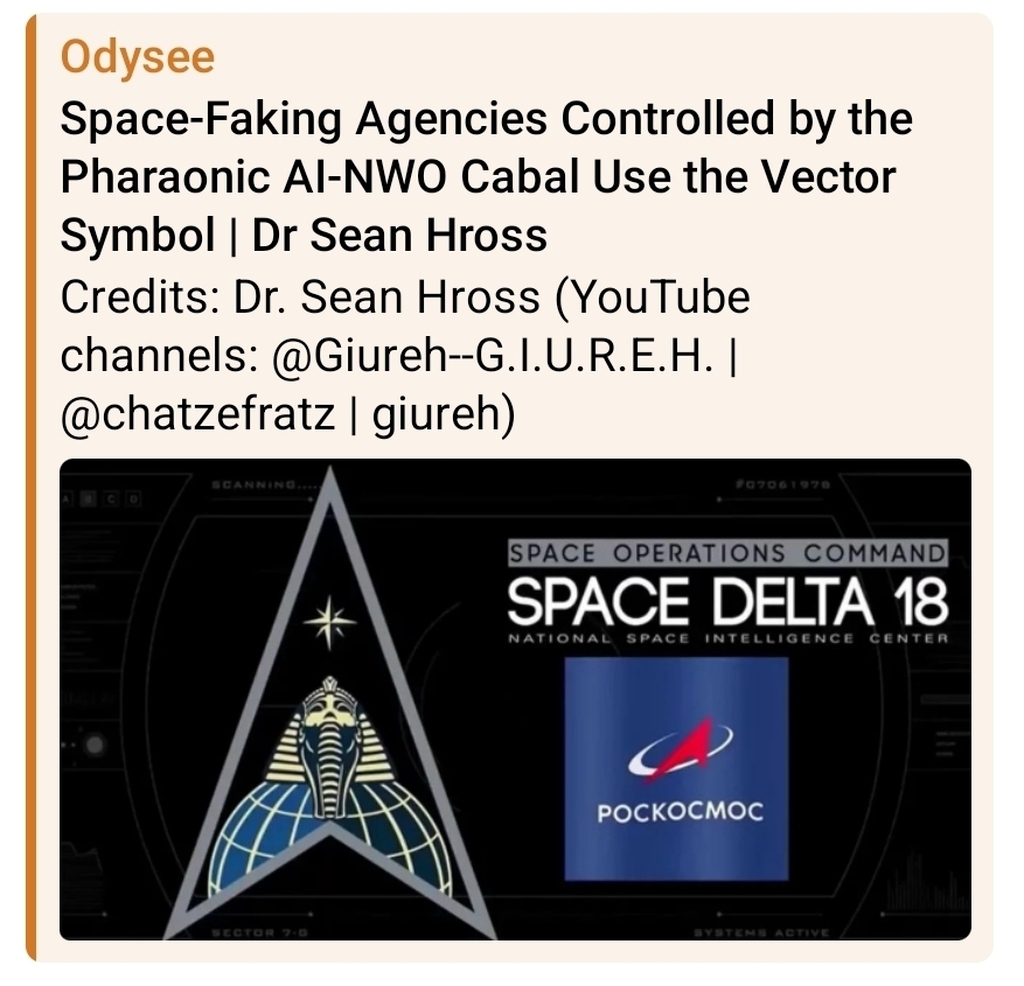 https://odysee.com/@allroadsleadtorome:c/United-States-Space-Force,-Delta-18-(pharaoh-symbol),-Roscosmos---NASA-logos----Dr.-Sean-Hross:b