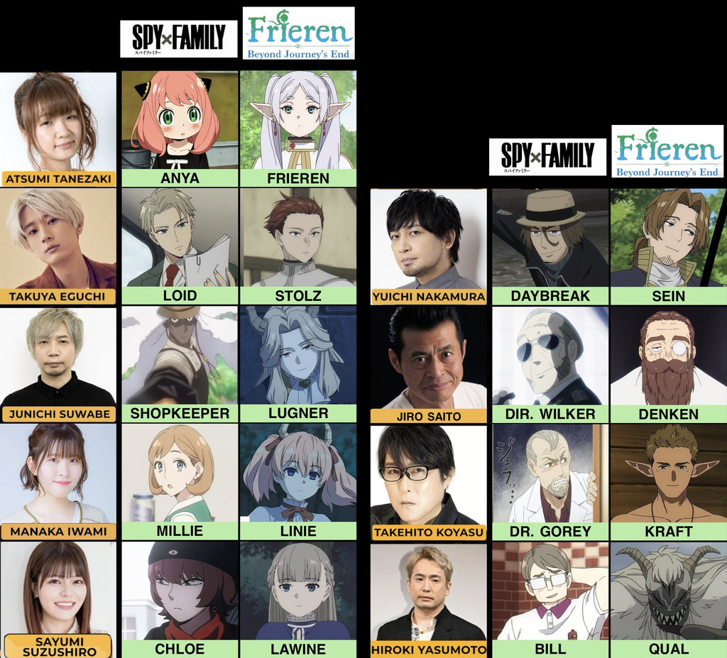 The cast overlap for Spy X Family vs Frieren