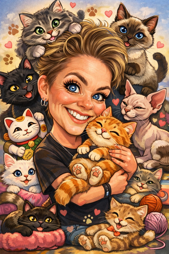 Great Caturday y’all! It’s about 65° & only getting to 68° today. We’ve got rain all day that’s keeping it cooler. Praise the rain! We need it. So far, other than the ice storm, it’s been a very dry winter. I finally got some decent sleep last night, but I woke up trying to get a migraine. No bueno! Not much planned today other than staying off the roads out of the storms. I hope everyone has a relaxing day. May the Lord bless you and keep you. This was made my first time playing around with AI image stuff. Turned out cute.