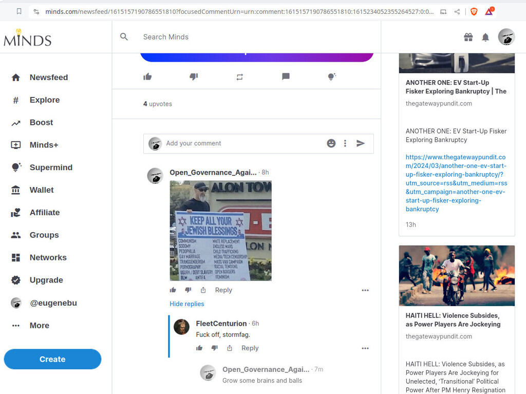 @SMetzeler worn out jew propaganda, just wined and gaslighted then deleted my responses. https://www.minds.com/newsfeed/1618804179982094354