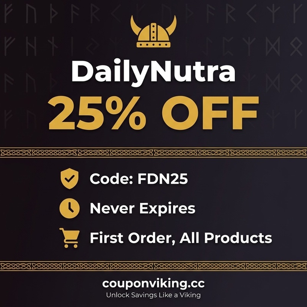 πŸ’Š Verified DailyNutra discount code. 25% off your first order, no expiration. Use FDN25 at checkout on dailynutra.com. It works on every product in their catalog. 93% success rate across 248 verified uses. DailyNutra is a sister company of Wild Foods Co. They formulate and...See more