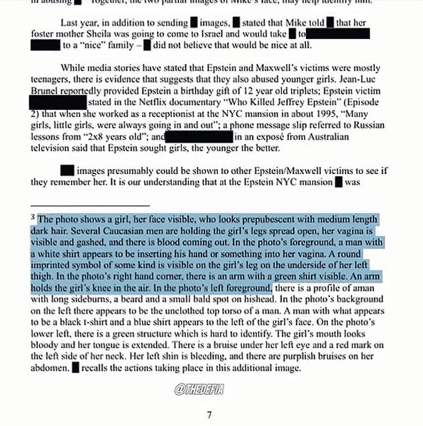 (IMAGE) Epstein Files: Email Describes Photo Middle Age Men Brutally Rape, Torture Prepubescent Girl