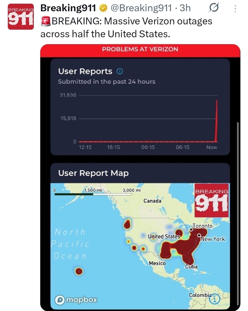 🚨 BREAKING: Massive Verizon outages across half the United States.