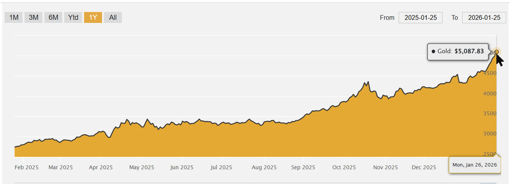 Gold Clears $5,000 as Economic Stress Builds Gold rocketed past $5,000, silver just crossed $100 and the headlines are grasping for explanations – from tariffs to politics. When the narratives stop making sense, it’s usually a sign of something deeper. https://www.theburningplatform.com/2026/01/26/gold-clears-5000-as-economic-stress-builds/