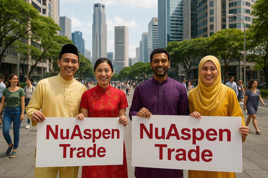 The spirit of progress shines bright in Singapore as investors proudly stand for NuAspen Trade, celebrating growth, unity, and success! 🚀