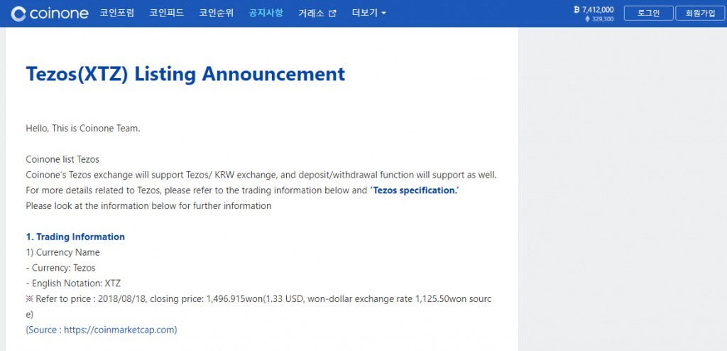 Salut les Amis ici la Sagesse de crypto-monnaies infos, TEZOS IS ON COINONE EXCHANGE !!! vous pouvez vous inscrire sur Minds ici https://www.minds.com/register?referrer=Ozatcho pour nous suivre