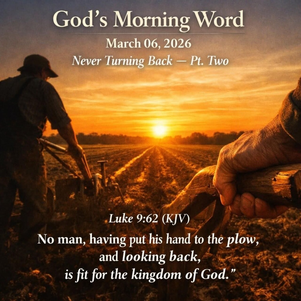God’s Morning Word March 06, 2026 Never Turning Back — Pt. Two As Christians, the Holy Spirit is constantly producing His fruit within us. Through His power, we are led forward as we live to serve our Father in Heaven. Because of that fruit, we have faith — knowing our God can...See more