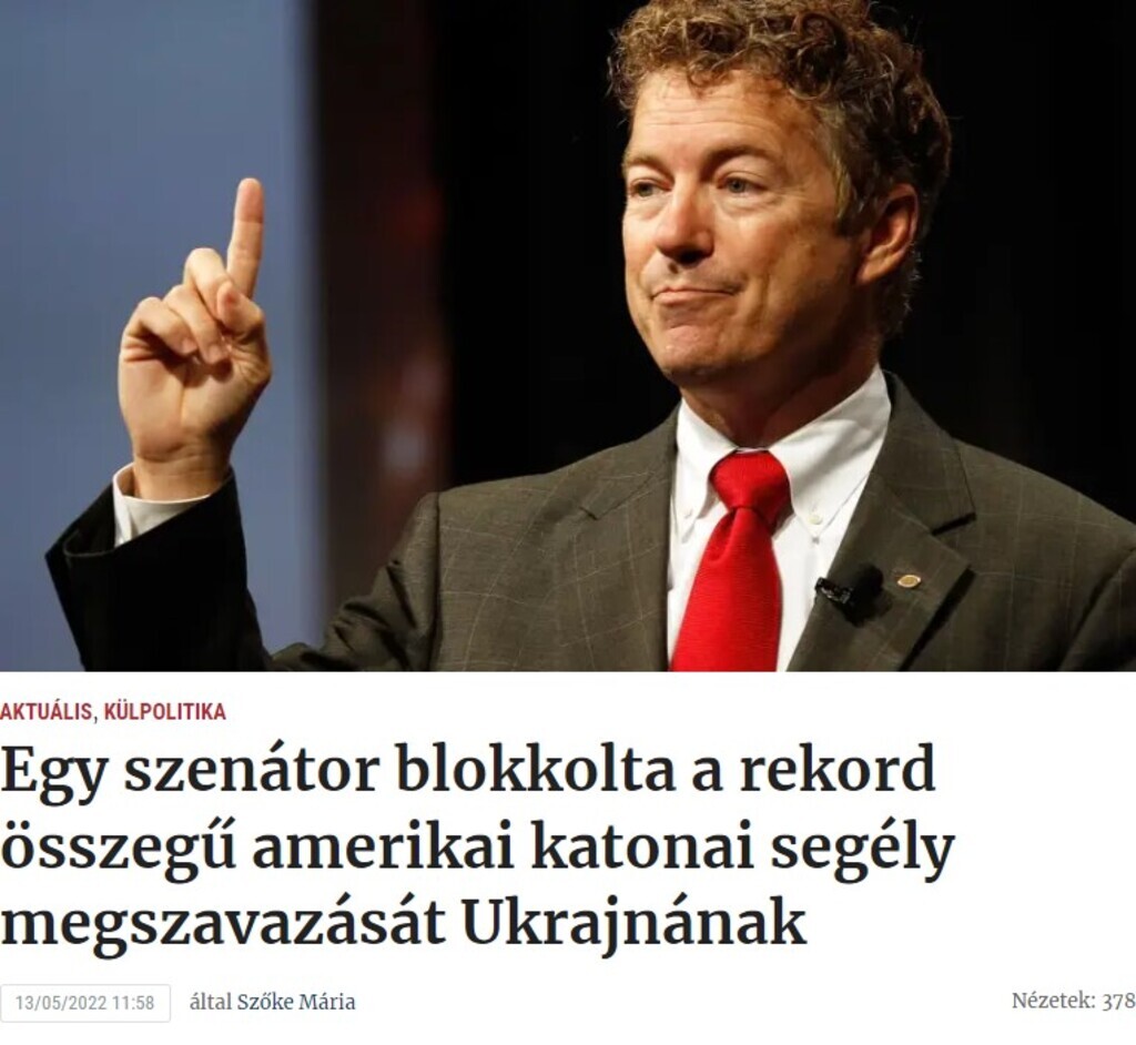 Egy szenátor blokkolta a rekord összegű amerikai katonai segély megszavazását Ukrajnának