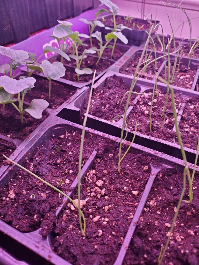 I did a mix of methods. Some winter sowing (two types of bread poppy, mache, and milkweed). Tried a seed snail (yellow onions). And then the more traditional cells (kale - 3 kinds, red onions, shallots, leeks, and celery).