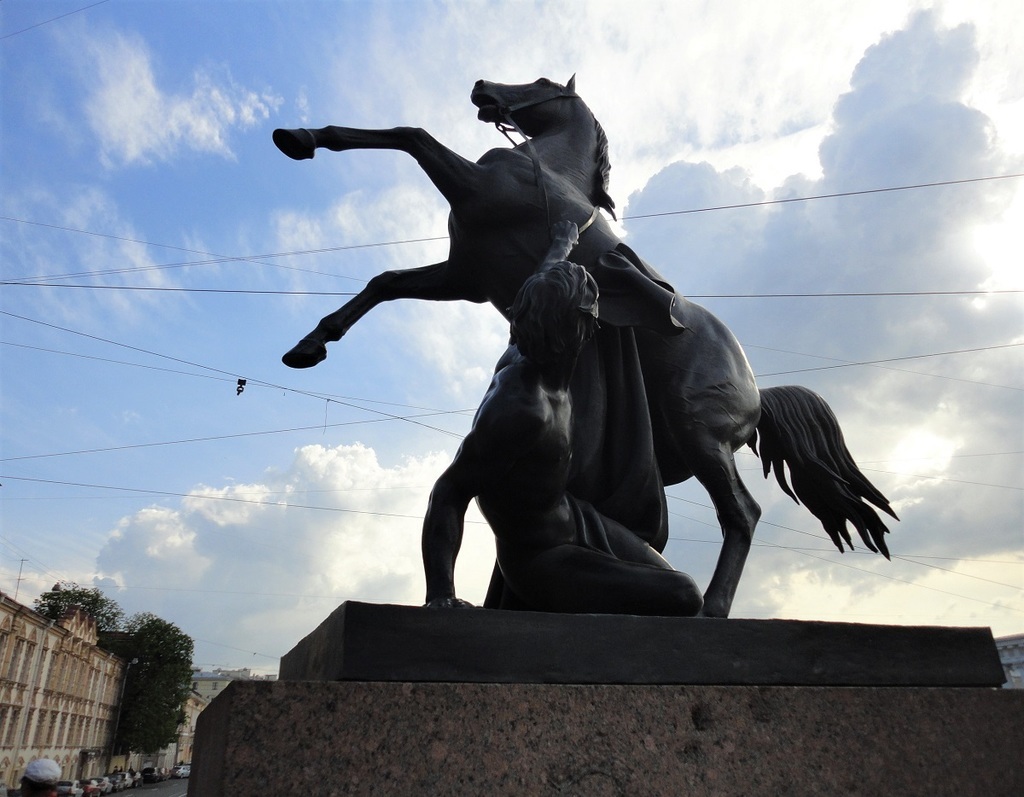 #cityscapephotography #architecturalphotography #landscapephotography Famous sculptures "taming the horse" Klodt, decorating Anichkov bridge. Saint Petersburg, Russia
