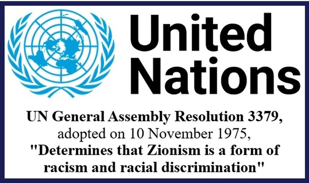 UN General Assembly Resolution 3379, adopted on 10 November 1975, "Determines that Zionism is a form of racism and racial discrimination".