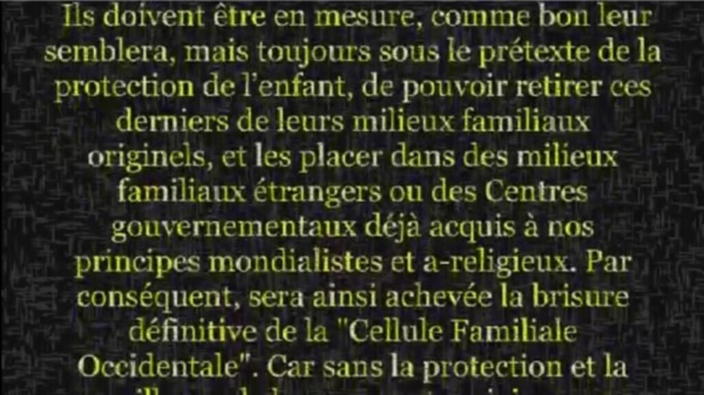 Ils doivent être en mesure, comme bon leur semblera, mais toujours sous le prétexte de la protection de l'enfant, de pouvoir retirer ces derniers de leurs milieux...See more