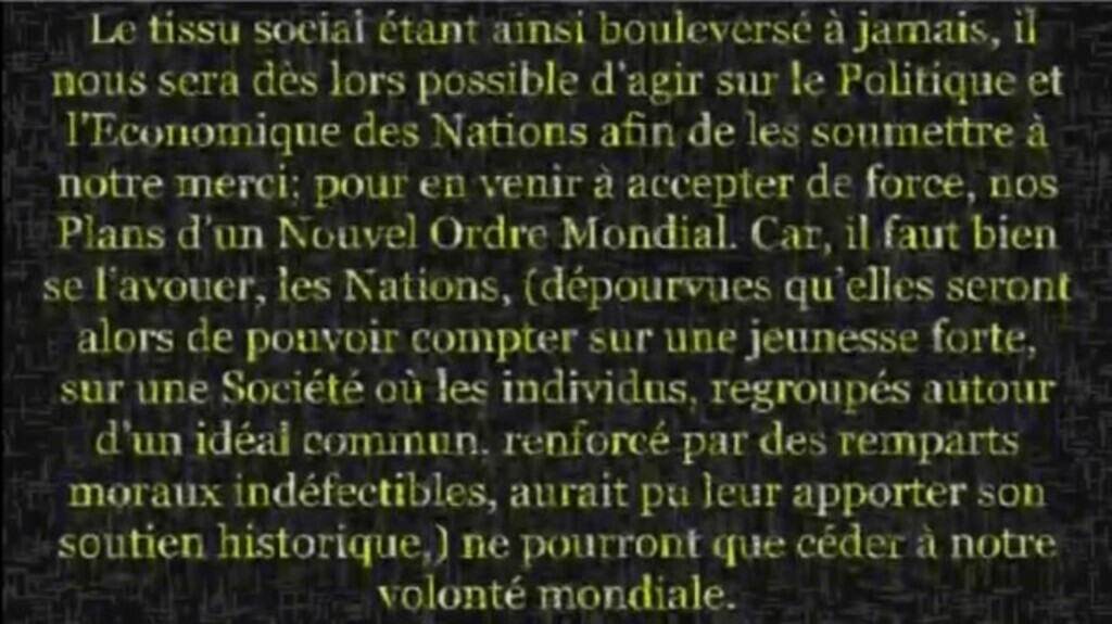 Le tissu social étant ainsi bouleversé à jamais, il nous sera dès lors possible d'agir sur le politique et l'économique des Nations afin de les soumettre à notre...See more