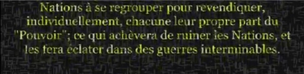 ...Nations à se regrouper pour revendiquer, individuellement, chacune leur propre part du « Pouvoir » ce qui achèvera de ruiner les Nations, et les fera éclater dans des...See more