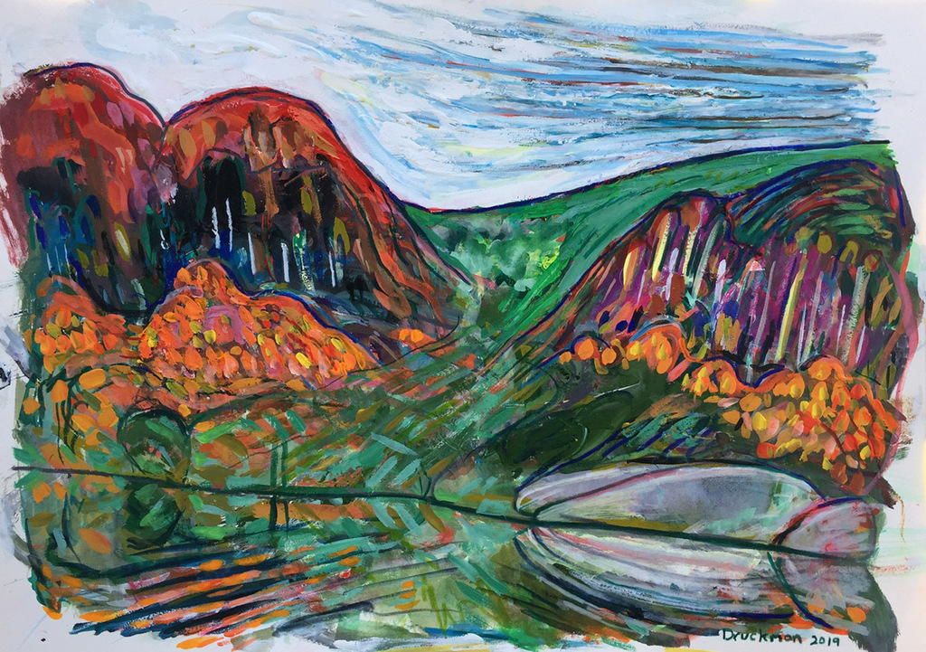 "Marc Quit Yapping About Flat Rocks", Gouache and pencil on paper, 10"x14". #painting #druckmanart #artwork #fineart #art