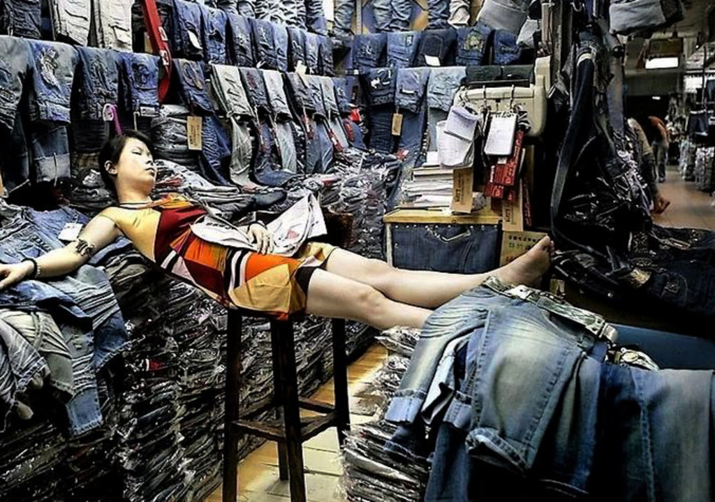 Hello, somebody is going to steal your jeans. Chinese during lunchtime.