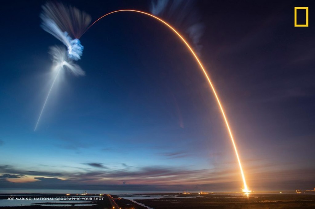 Photographer Joe Marino made a long exposure of a SpaceX Falcon 9 booster launching the SpaceX CRS-15 Dragon spacecraft from the Kennedy Space Center in Florida, USA on June 29, 2018. https://on.natgeo.com/2HOlTixhttps://on.natgeo.com/2HOlTix