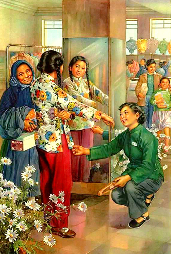 ...ore - Chinese New Year's painting of the 1950s. The mother and the daughter are in typical costume of the early 20th century in southern rural China. #china #painting.