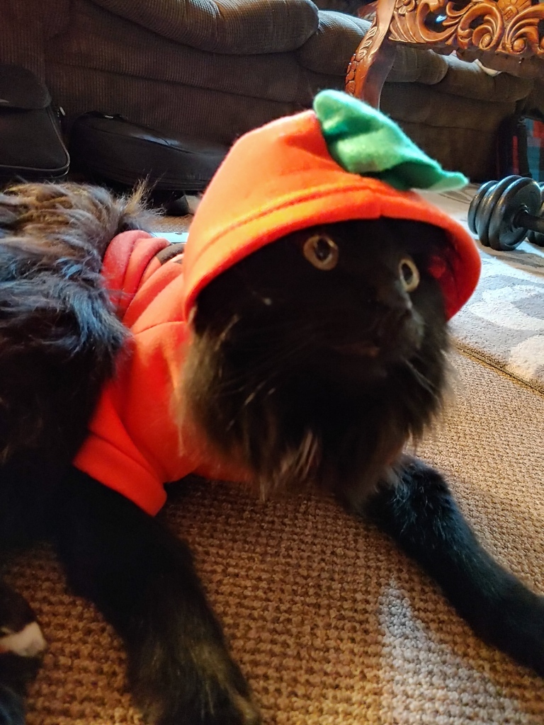 Awww Finn in his pumpkin pjs. Our little halloween cat 🐱 #halloween #cat #pumpkin #kitten #love