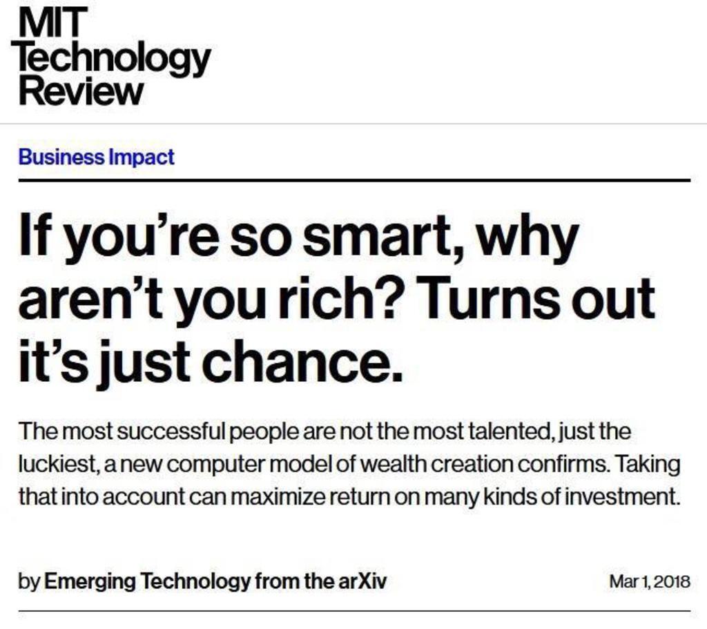 An analysis computer program by the MIT finds rich people are rich because of luck, not talent nor skill nor intellect