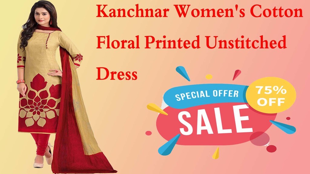 fashionothon super sale of the day on Kanchnar Women's Cotton Floral Printed Unstitched Dress with 75% discount unique design and pure unstitched cotton material used with printed style best ethnic wear for womens on best online shopping site in India fashionothon.com