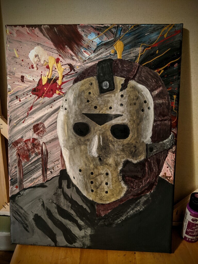 Working on a commission piece. Who knew a hockey mask could be such a pain in the ass... #fridaythethirtheenth #jason #horror #art #paint