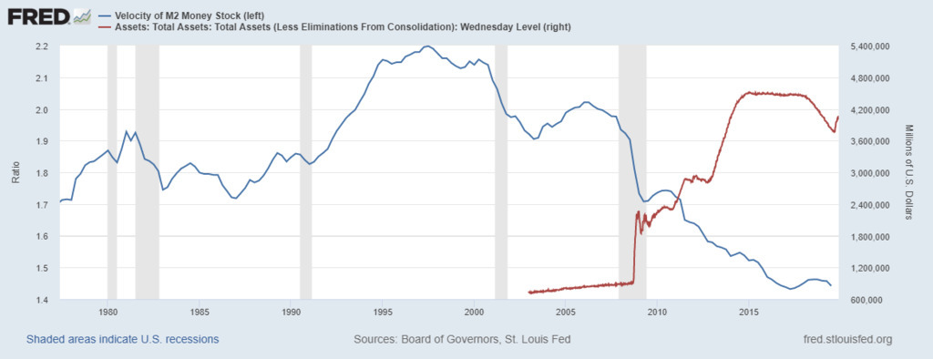 1/2 - image - M2 velocity (blue line) compared with Fed balance sheet (red line) A frequently asked question of market analysts who support precious metals is; "If the Fed printing money causes inflation, and that is a bad thing, where is the inflation?" A good question, the...See more