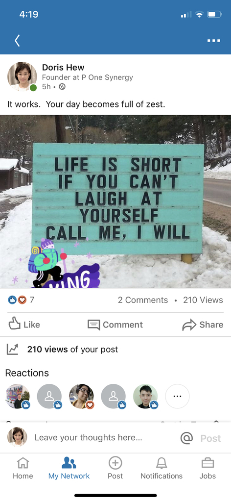 Posted in LinkedIn 5 hours ago, secured over 210 views. Simple message, effective.