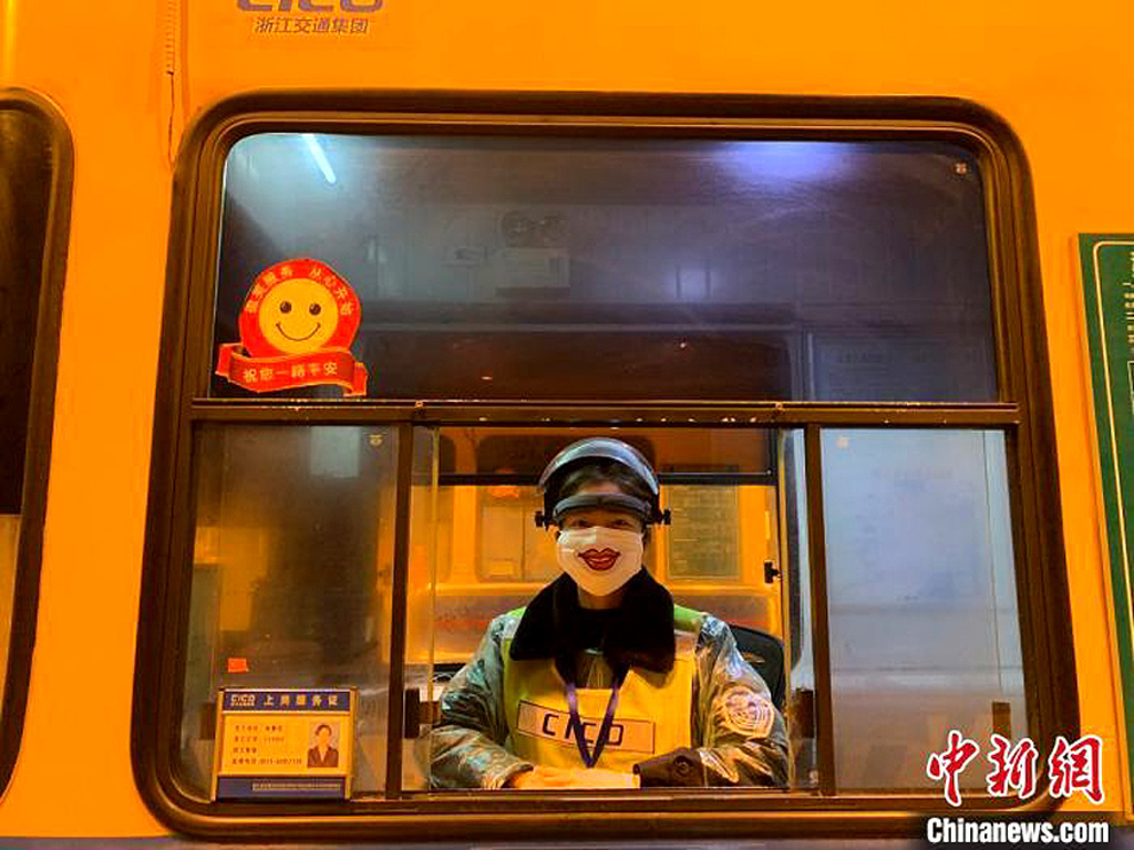 A Chinese toll collector wearing a face mask keeps smiling to the drivers behind the wheels on the toll road. #china #facemask #coronavirus #tollroads