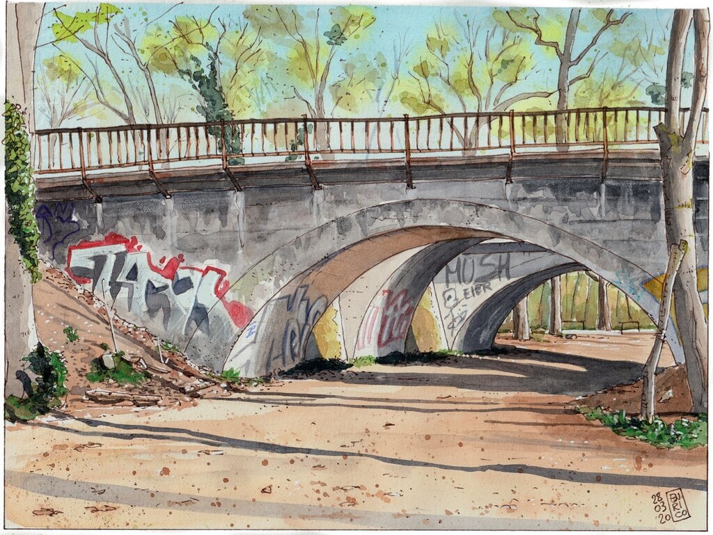 This is my daily escapade from self-isolation. The wood is warming up for spring, there are few people training or walking the dog. The birds are chirping, and nature is wonderful after all this days mainly indoor. #art #watercolor #basel
