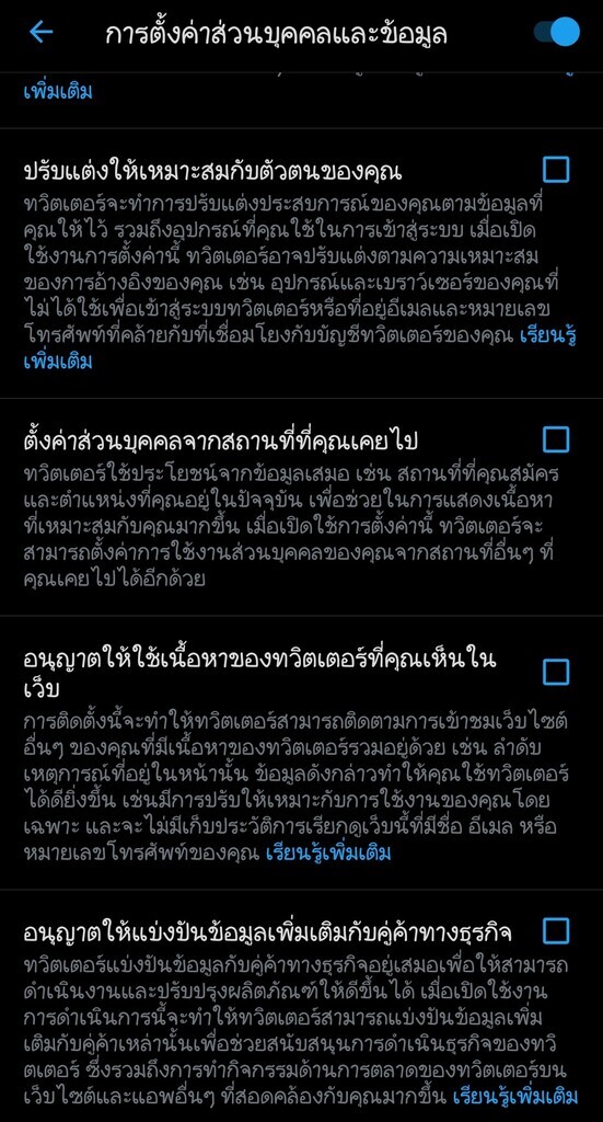 -นำ ✅ ช่องอนุญาตให้แบ่งปันข้อมูลเพิ่มเติมกับคู่ค้าทางธุรกิจ ออก