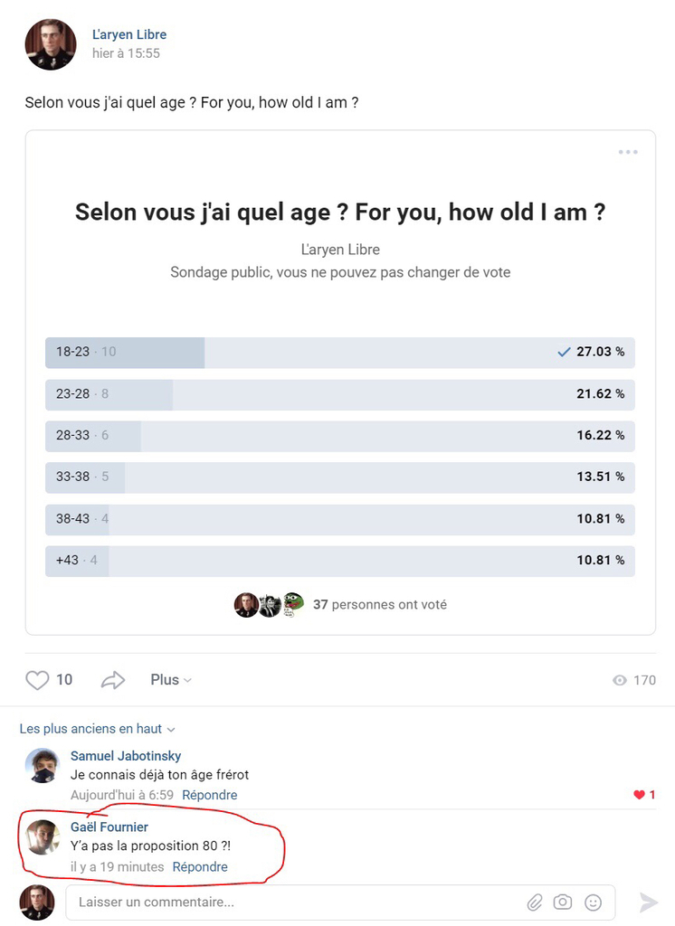 Gaël, l'exemple même du sale narbo. C'est un blanc bizarre avec un teint olivâtre, qui rien qu'à sa gueule tu comprends qu'il touche le RSA et joue du djembé dans les gares. Avec son QI, d’huître il croit que les NS sont des boomers et se croit subversif à troller (et encore...See more