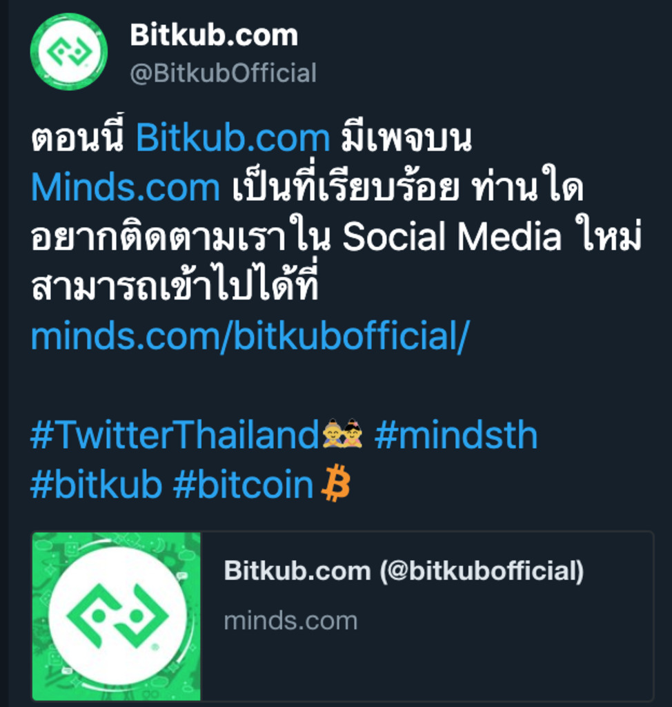 ไอ้ย่ะ BitKubOfficial ก็มา เมื่อไหร่จะรับ Minds Token ค๊าบบ ผมนี้ลุ้นเลย ตื่นเต้นนะเนี้ย #TheMindsTokenRevolution #MilkTeaAllianceMarket #WorldMarket กดสับสิครับรอไร https://www.minds.com/bitkubofficial/