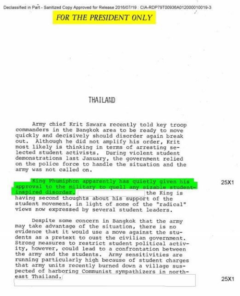เอกสารจาก CIA ระบุว่า ร.9 มีส่วนสนับสนุนให้ทหารใช้กำลังกับนักศึกษา เมื่อวันที่ 14 ตุลา สั่งฆ่าประชาชนเพื่อตัวเอง แต่ได้ความรักจากประชาชนเป็นผลพลอยได้ #Kingrama9 #mindsth #thairoyal #kingofthailand #thailand