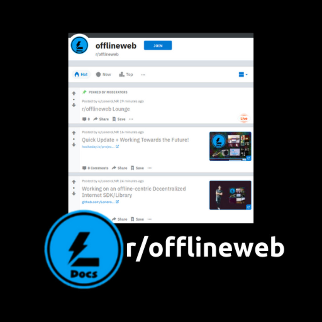 We just created a new community on Reddit + we have a quick update for you: https://hackaday.io/project/171604-building-a-decentralized-internet/log/178541-quick-update-working-towards-the-future | Go to https://www.reddit.com/r/offlineweb/ via https://lonero.org and https://starkdrones.org/home/os