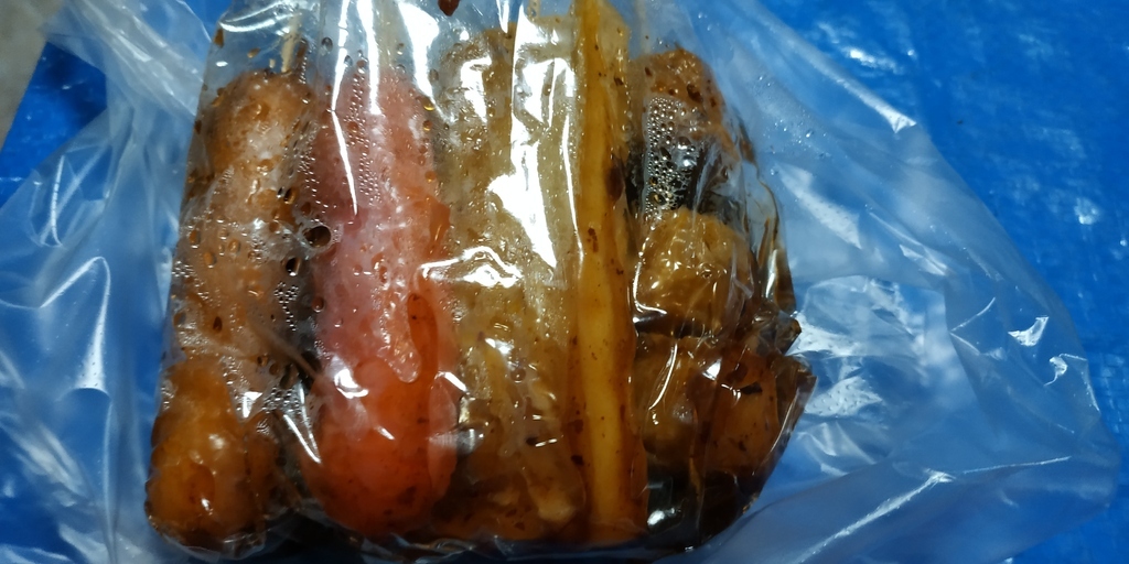 ไส้กรอกทอด ไม้ละ 5 บาทกับน้ำจิ้มเจ้มจ้น