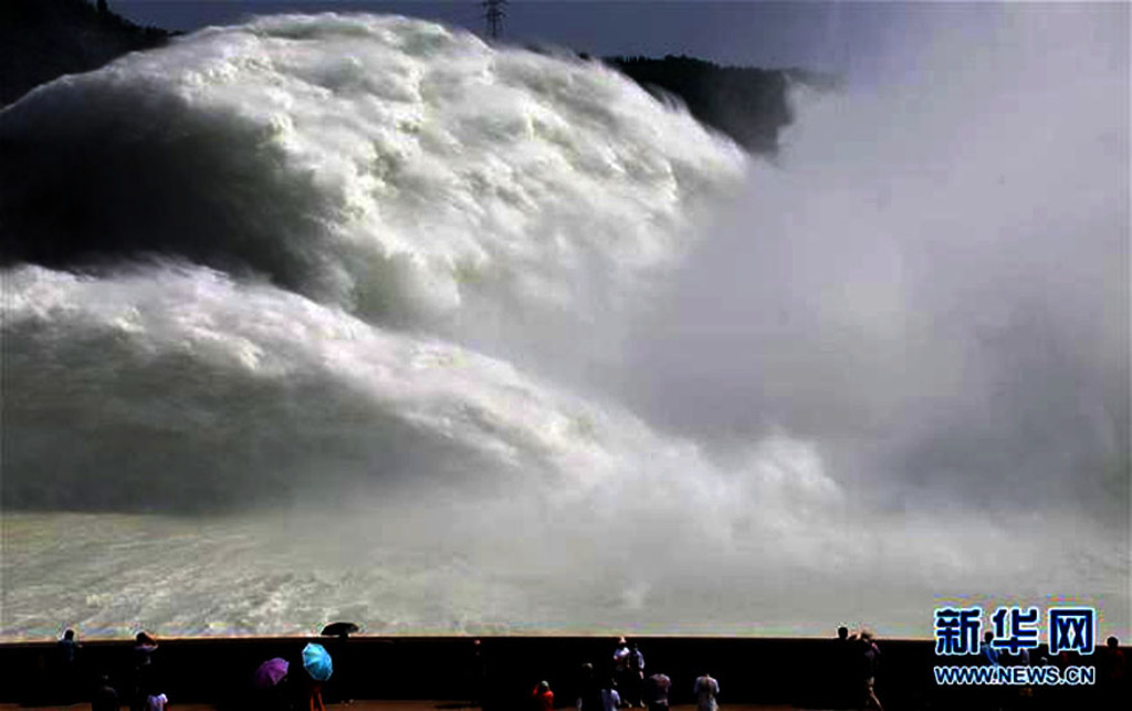 A powerful flood discharge through the spillway of Xiaolangdi Dam in Henan Province yesterday, 25 Jun 2020. Xiaolangdi Dam impounds the Yellow River. It has a total installed capacity of 1,836 MW and generates up to 5.1 TWh annually.