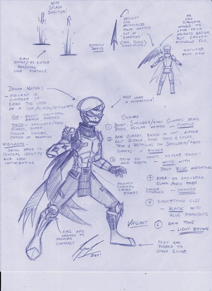 This is how I usually do a character concept design on paper. I like to put some design notes, some tidbits about the character, and give an overall feel as to how to draw them. #conceptsketch