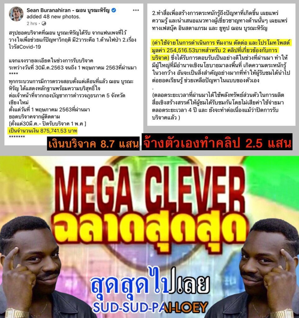 เลวไปจนสุด ฉุดไม่อยู่เเล้วนะไอ้ฌอน หักส่วนเเบ่งเงินบริจาคไปจ่ายค่าโปรโมทโพส มึงนีเหี้ยจริง ๆ #ฌอนบูรณหิรัญ #thailand