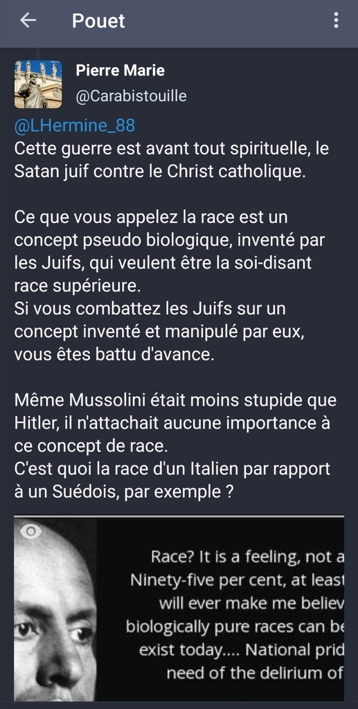 Encore un catho qui ne veux pas comprendre, qui préfère un noir catho qu'un blanc niant l'existence des races. Nous sommes tous pareil bien sûr. La race dépasse les frontières un blanc suédois, italien ou français c'est la même chose c'est de l'aryen.