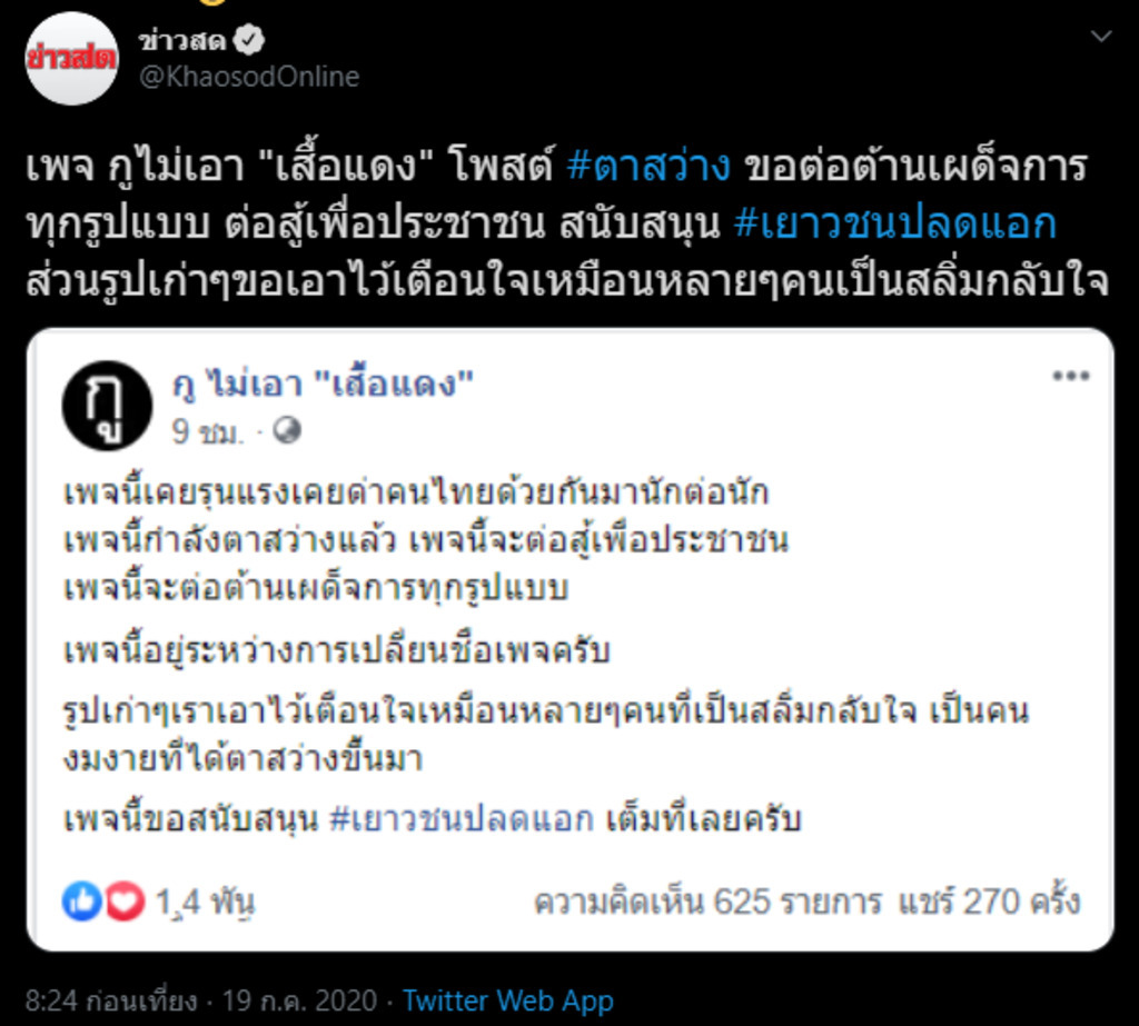บอกแล้วไงว่า "สลิ่ม" เลิกยาก แต่เลิกได้ ส่วนสลิ่มที่ยังหลับหูหลับตาเชียร์เผด็จการ ถ้ายังคิดไม่ได้ก็อยู่อย่างทาสต่อไปละกัน #เยาวชนปลดแอก #สลิ่มกลับใจ #ThaiPolitics #MindsTH #Thailand