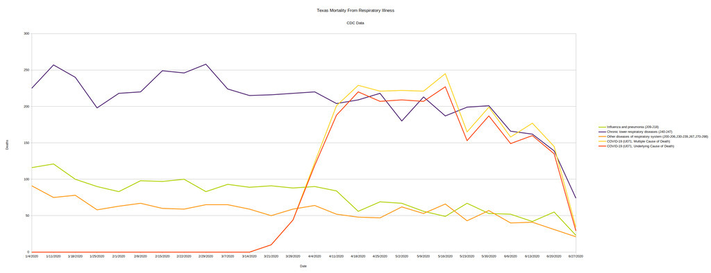 According to the CDC, deaths from all respiratory illnesses in #Texas have been declining since mid-May.