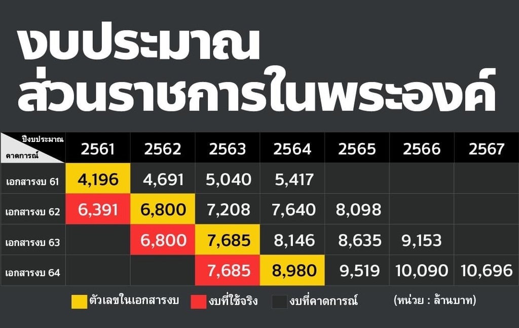 งบประมาณส่วนพระองค์ในปีหน้าจะสูงกว่าปีนี้ 1,295ล้านบาท งบประมาณของปีนี้ 7,685ล้านบาท ปีหน้า 8,980ล้านบาท คิดเป็นเปอร์เซ็นได้ 16.8% การเพิ่มขึ้นของงบประมาณสูงกว่าภาพรวมของงบประมาณแผ่นดิน หนี้สาธารณะเพิ่มขึ้น หลายสาขาอาชีพรายได้ลดลงจากโควิด แต่งบประมาณของกษัตริย์กับพุ่งสูงขึ้น ภาษีเรามันควรได้กลับมาดูแลพวกเราหรือเปล่า แล้วงบประมาณตรงนั้นเค้าให้ชี้แจงก็มาไล่จับเค้า นี่แหละต้นเหตุของคำถามว่า กษัตริย์มีไว้ทำไม เราที่เป็นประชาชนได้อะไรจากการมีกษัตริย์ คุณภาพชีวิตก็ต่ำเตี้ยเรี่ยดิน ภาษีประชาชนทำร้ายประชาชนโดยแท้